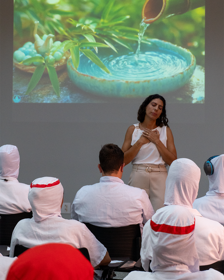Durante sua fala, Ayala ressaltou a importância de cuidar de si para, então, conseguir cuidar do outro. O autoconhecimento e o ato de reservar um tempo para si mesmo foram apresentados como práticas essenciais para a manutenção da saúde mental. A palestrante compartilhou também sua própria experiência com a ansiedade, relatando os desafios enfrentados ao longo do processo e reforçando que, embora o caminho seja difícil, é possível sair “do fundo do poço”, independentemente da profundidade, desde que se avance um passo de cada vez.